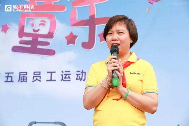 ▲锐丰科技工会主席、市场部经理王俊文为运动会主持