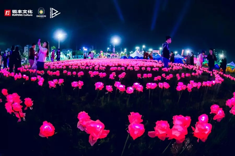 玩了一天,现场灯光也随夜幕亮起