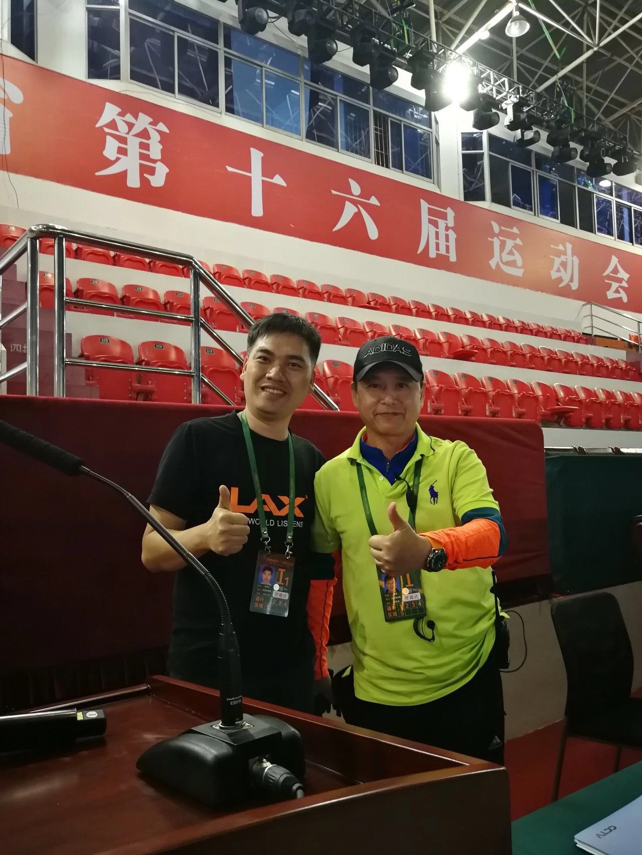 ▼锐丰科技品牌发展运营部总监吴华立与福建省第十六届运动会开幕式总导演谢南合影留念