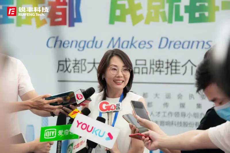 锐丰科技副总经理、锐丰文化总经理黄沛凌就企业办赛的问题表示,“国际赛事不仅是体育竞技的盛会,也是全球文化交流的平台。2021年成都大运会,是中国西部承办的首次国际性综合赛事。锐丰不仅仅在演出设备上拥有技术优势,同时我们还有一支在文化领域深耕的创意的团队,多次参与大型体育赛事开闭幕式创编。我们希望为成都大运会的成功举办提供国际一流演出设备支持的同时也使来自五湖四海的年轻人更好地分享中国特色和世界文化。”
