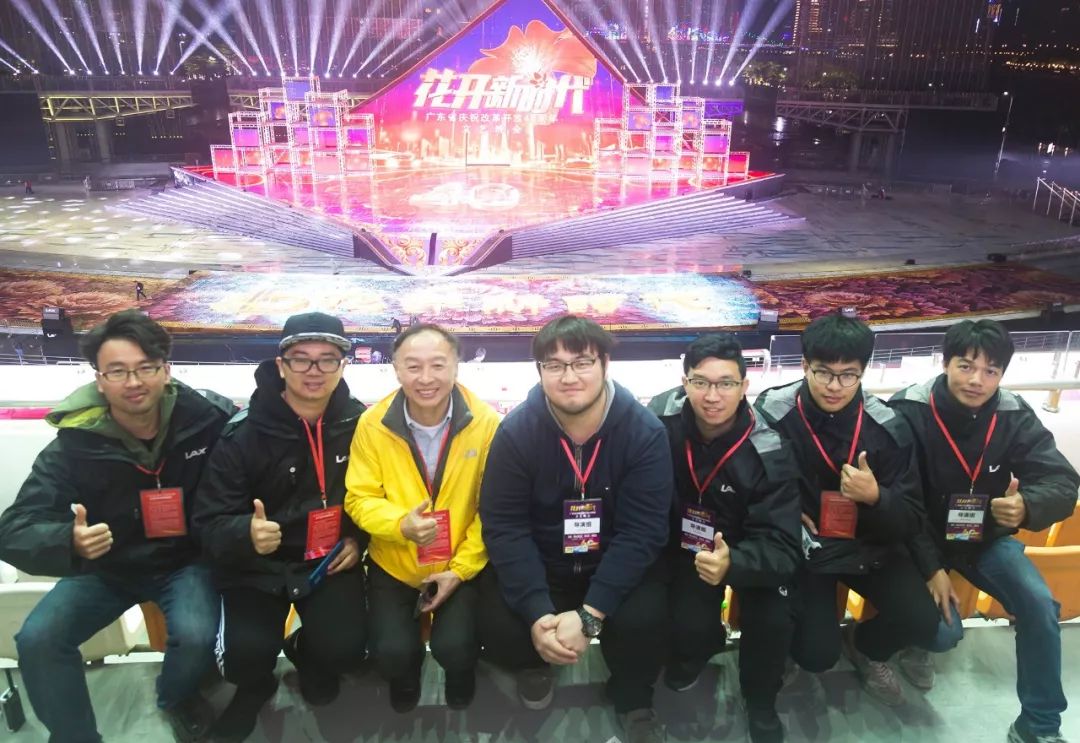 △广东改革开放40周年文艺晚会音响总设计宋多多与LAX营销中心技术团队合照