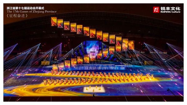 锐丰文化作为本届省运会开幕式创意制作团队,围绕“活力省运、崛起浙中”的主题,创新采用仪演融合的全新模式,向全国、全省人民呈现一届具有“浙江特色、金华韵味”的体育文化盛会,同时开创了省运会开幕式编排先例,全面展现“诗画江南、活力浙江”的崭新气象,全方位展示浙江体育事业的丰富多彩和蓬勃发展。