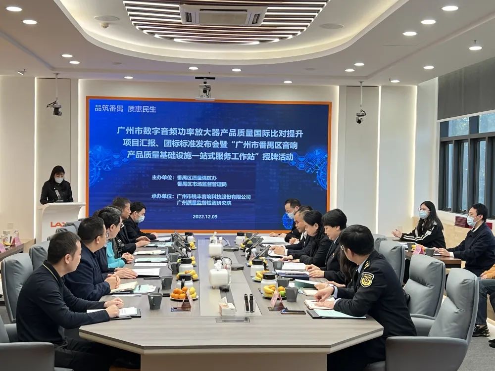 2022年12月09日,广州市数字音频功率放大器产品质量国际比对提升项目汇报、团标标准发布暨“广州市番禺区音响产品质量基础设施一站式服务工作站”成立授牌活动在广州市锐丰音响科技股份有限公司隆重召开。