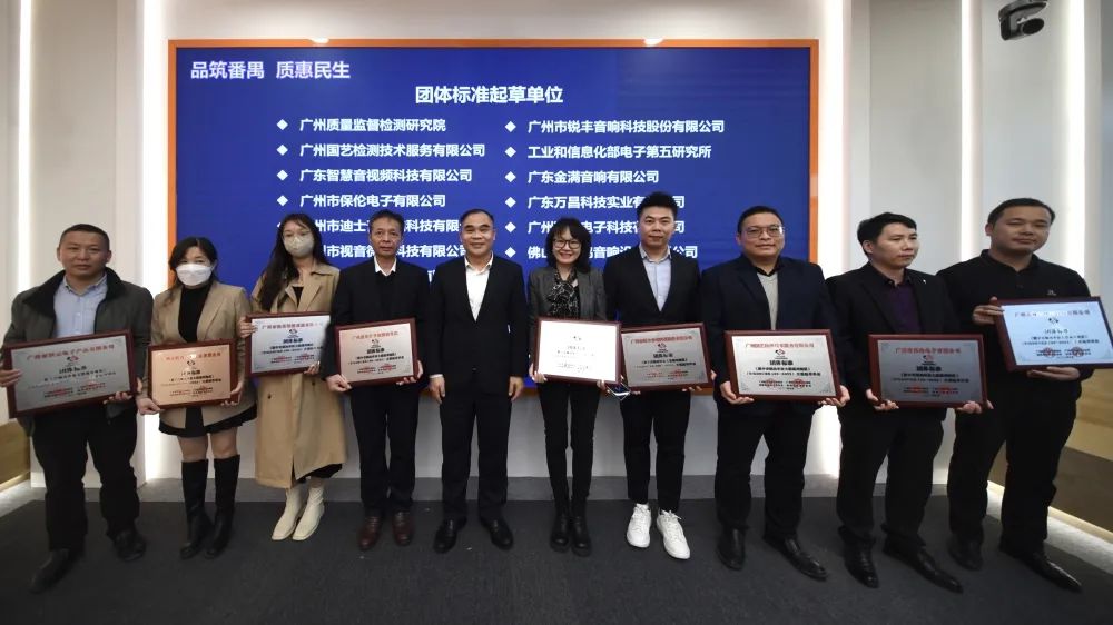 向2家番禺区音响产品质量基础设施一站式服务工作站、5家首批入驻服务机构、9家团体标准参编单位授牌;向8位入驻专家颁发聘书