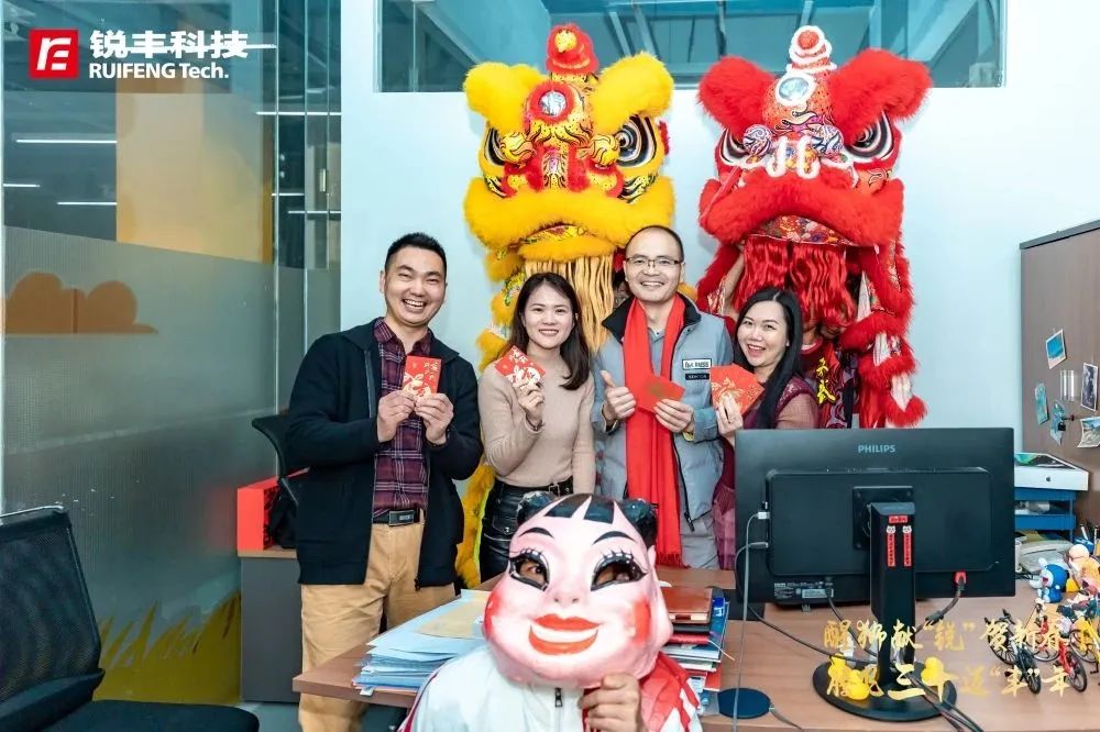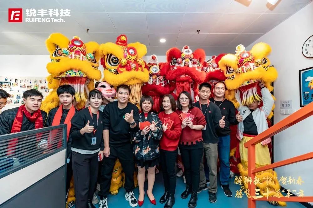 群狮攀高、采青接财、巡楼拜年、福传四方……一幅幅生机勃勃的景象跃然锐丰科技园区,喜悦散播到公司的每一个地方,同时意味着新的一年,锐丰科技也会以“展宏图、迎财旺、传吉运”的方式开启「锐」兔吉祥如意年。